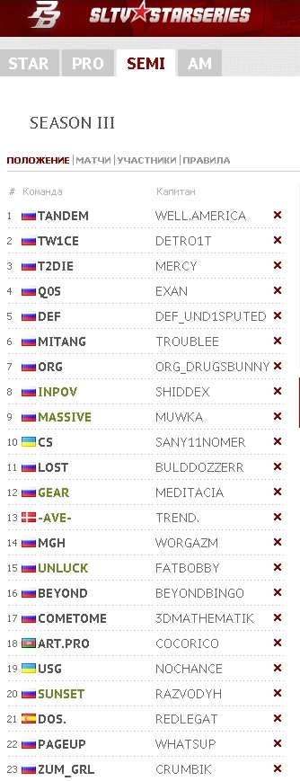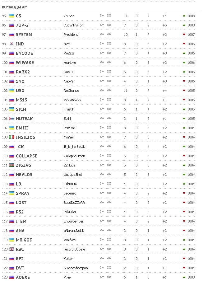 Сs - ТОП1 аматроской лиги на 01.05.2012г.